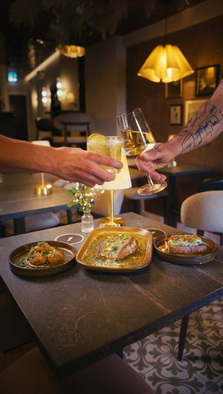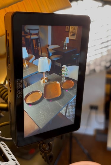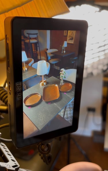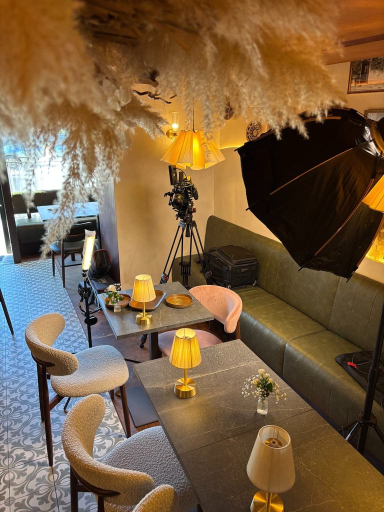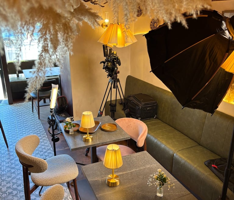 The second approach centred around a curated seafood spread, styled on a table with drinks to create a more relaxed, social dining atmosphere. This setup allowed us to show multiple dishes together with subtle camera movement to highlight the finer details of each dish.