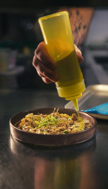 We developed two creative approaches. The first focused on nine individual dishes, each captured in a single continuous shot, following the chef’s hands as the plate came together from start to finish. This minimal style kept the attention on the food and emphasised the detail and presentation.